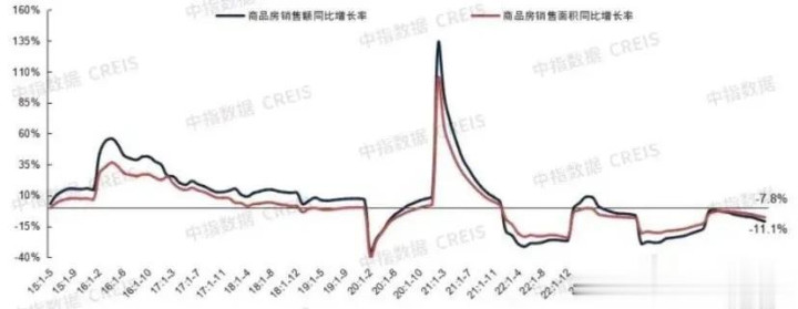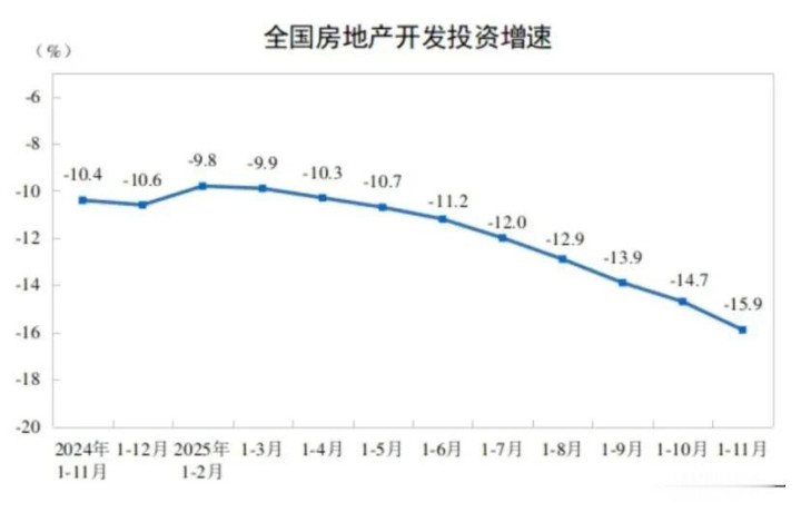 整体来看,今年1~11月份,全国房地产开发投资78591亿元,同比下降15.9%;新建商品房销售面积78702万平方米,同比下降7.8%。