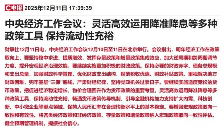 明年货币政策的宽松基调,在上周召开的中央经济工作会议中已经定调:将继续实施适度宽松的货币政策,并“灵活高效运用降准降息等多种政策工具”。